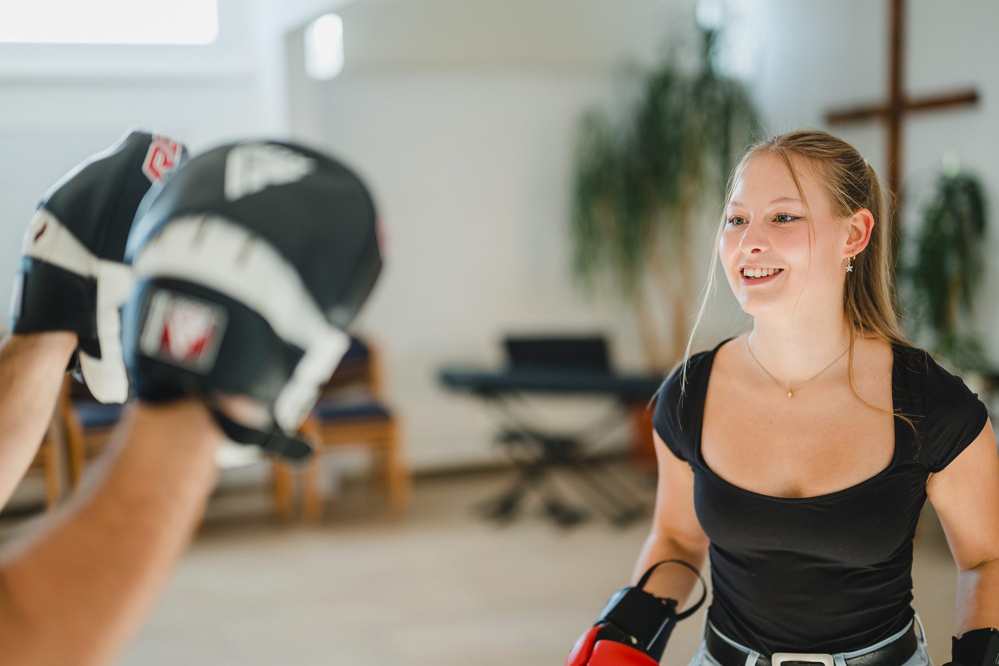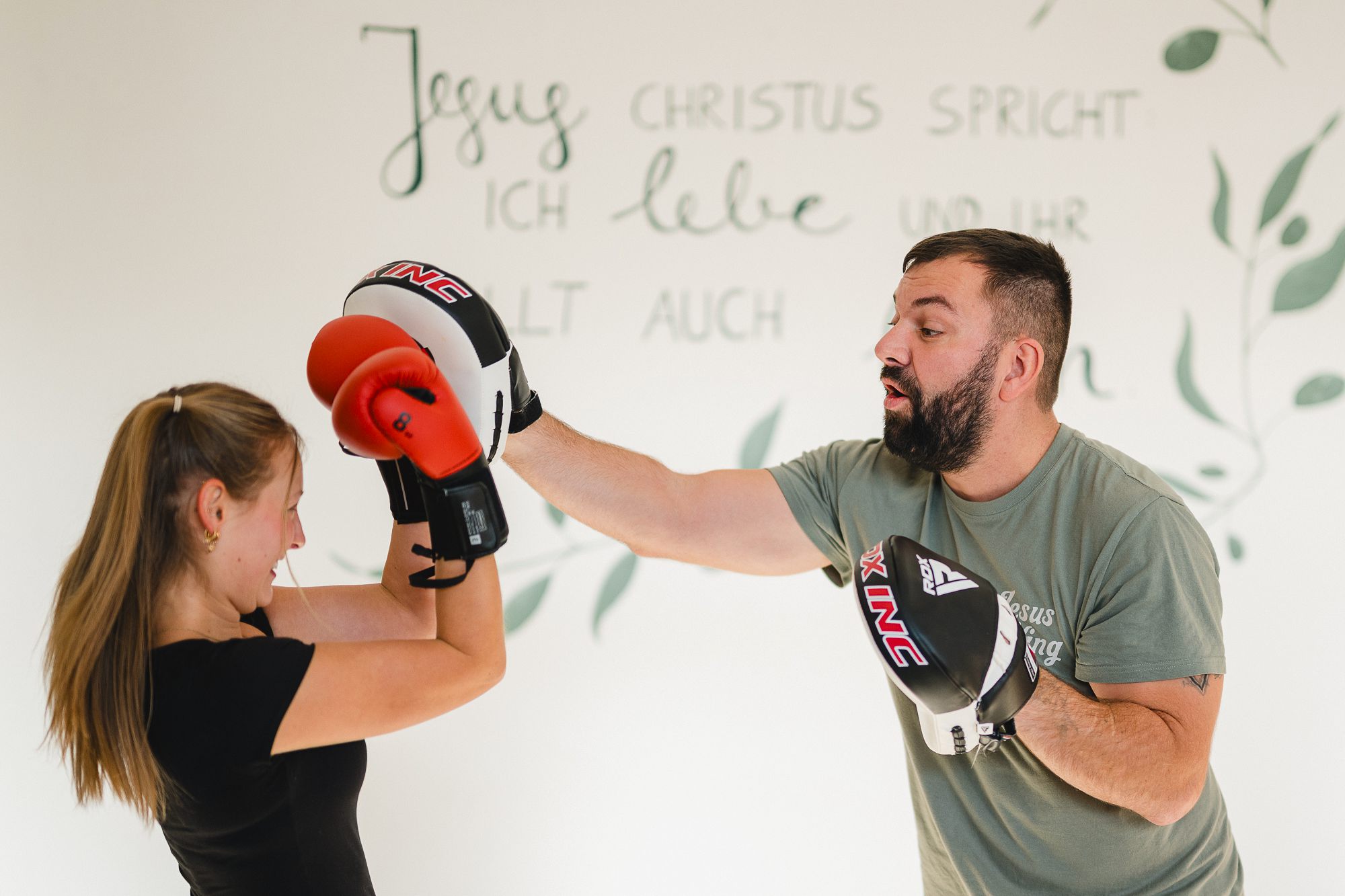 Ein besonderes Highlight waren dynamische Aufnahmen, unter anderem ein inszenierter „Boxkampf“. Diese Bilder symbolisieren den inneren Konflikt vieler Hilfesuchender – den Kampf gegen Abhängigkeit, Scham und Hoffnungslosigkeit.